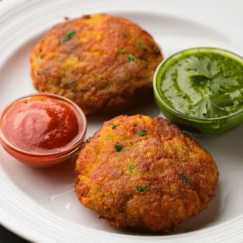 Golden-fried potato patties seasoned with Indian spices served with a tangy tamarind chutney and mint chutney. Vegan, Vegetarian, Gluten Free