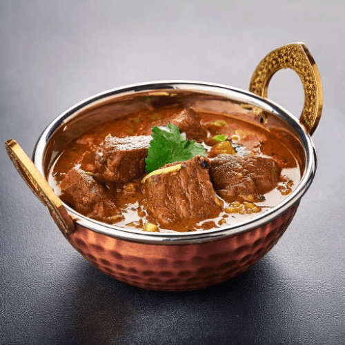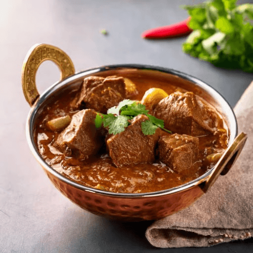 A spicy and robust curry featuring tender lamb pieces cooked in a sauce made from tomatoes, onions, and a special blend of spices. A popular South Indian dish known for its intense flavours. Gluten Free