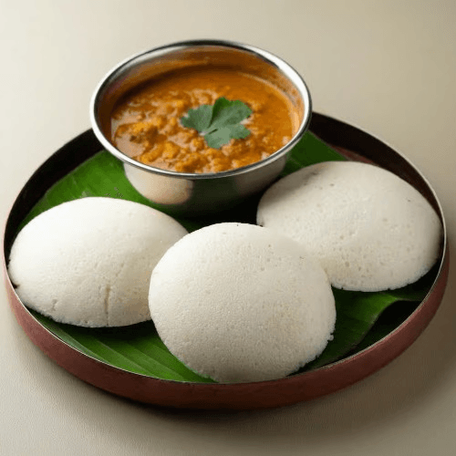 Steamed rice cakes served with tomato, coconut chutney, lentil & vegetable stew Vegan, Vegetarian, Gluten Free, Nuts In