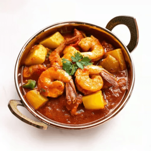 A spicy and robust curry featuring shrimp cooked in a sauce made from tomatoes, onions, and a special blend of spices. A South Indian specialty known for its intense flavors. Gluten Free