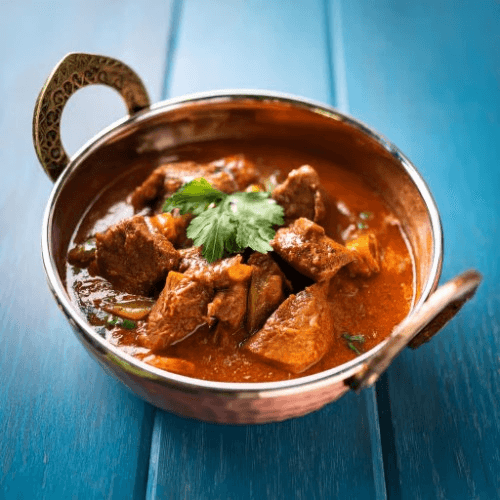 A fiery and tangy curry with tender pieces of lamb marinated in vinegar and spices, then cooked with potatoes and a blend of chilies. A popular dish known for its bold and intense flavors. Gluten Free