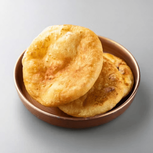 A pair of light and fluffy deep-fried bread made from unleavened wheat dough puffed up to a golden perfection. Often enjoyed with curries or as a snack. Vegetarian