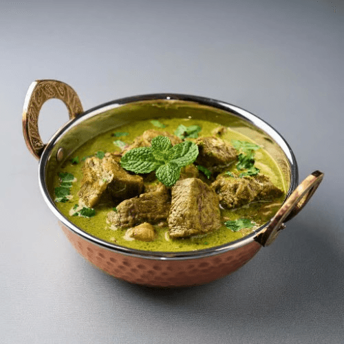 A vibrant and flavourful curry with lamb pieces marinated in a blend of fresh mint, coriander, and green chillies, then cooked in a creamy green sauce. A refreshing and aromatic dish. Gluten Free