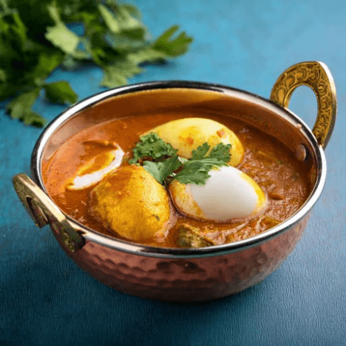 Hard-boiled eggs simmered in a spiced tomato-onion gravy infused with cumin, coriander, and garam masala. Served with basmati rice for a flavourful and satisfying meal. Gluten Free