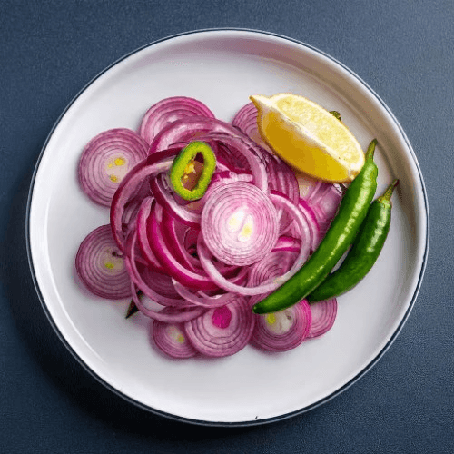 Desi Indian style red onion, green chili, and lemon. Vegan, Vegetarian, Gluten Free