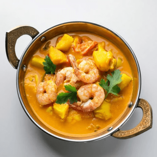 A unique and flavorful curry combining shrimp with sweet and tangy mango puree, cooked in a creamy sauce. A delightful blend of sweet and savory. Gluten Free