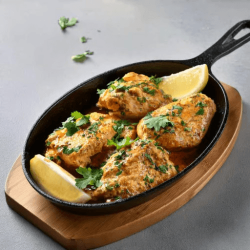 Boneless chicken pieces marinated in a creamy mixture of cheese, yogurt, and mild spices, then grilled in a tandoor to a tender and juicy finish. Mild and rich in flavor. Gluten Free
