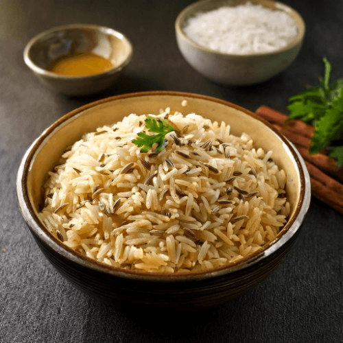 Aromatic basmati rice cooked with cumin seeds and a hint of ghee, creates a flavorful and fragrant side dish. Vegan, Vegetarian, Gluten Free