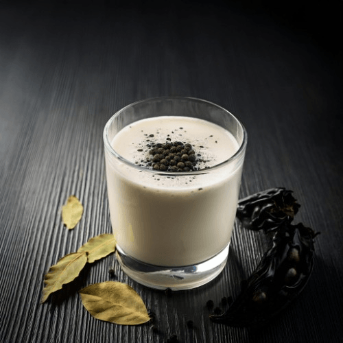 A savoury and tangy yogurt-based drink, blended with salt, offering a refreshing and palate-cleansing experience