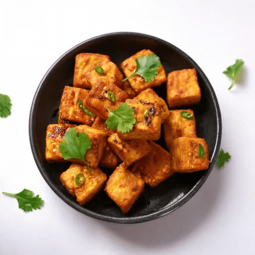 Crispy fried paneer cubes marinated in a spicy yogurt-based sauce, garnished with curry leaves and green chilies. Vegetarian
