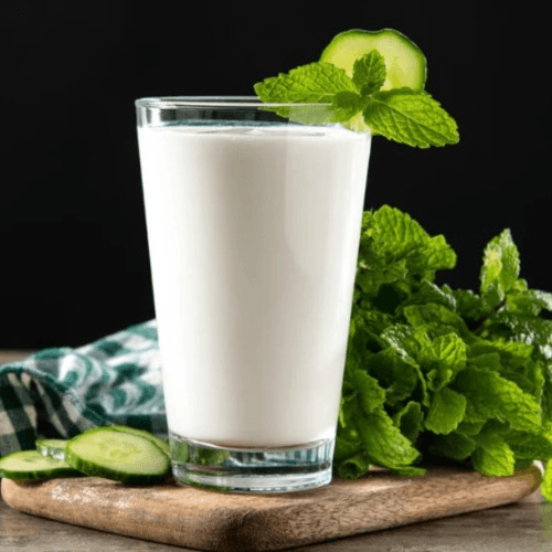 A light and refreshing yogurt-based drink, spiced with roasted cumin and a hint of salt, perfect for cooling down and aiding digestion
