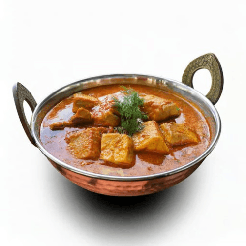 A traditional Kashmiri dish with chicken pieces cooked in a rich and aromatic sauce made from yogurt, tomatoes, and a blend of spices, including saffron and fennel. A fragrant and flavourful dish. Gluten Free