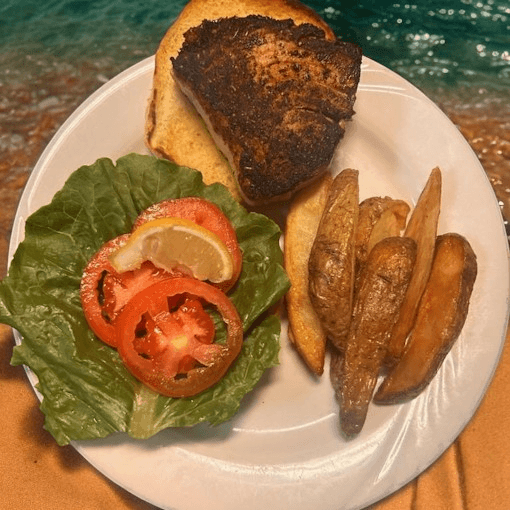 Hook and line caught yellow-fin tuna, grilled or blackened. Served with house steak fries