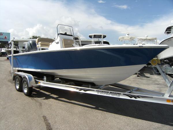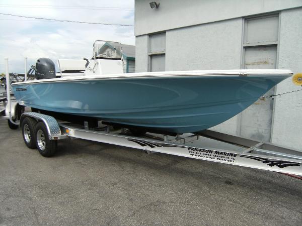 5 YEAR COMPONENT WARRANTY!!!! The smart layout, design and high quality fit and finish make the R 226 an amazing bay boat. The boat comes with the Trailer!! The price is very reasonable for such a quality boat. When you take a close look at the boat you will see a tremendous value. This boat is rigged with a 200 HP Yamaha 4-Stroke. The boat has 3 Live wells (two in the rear and one in the bow). The console door swings open on the front side making it extremely easy to get into. The trailer is included.
