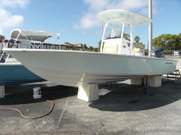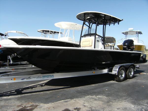 If you are looking for the perfect bay boat where you can fish hard inshore and offshore and still keep the family happy then this is the boat for you. This 247 Sportsman is rigged with the 300 HP Yamaha with Digital Throttle & Shift, Yamaha Command Link Plus computer. It is an extremely nice running bay boat which definitely has the capability of running offshore as well as inshore. The boat has a lot of freeboard for a bay boat and it is extremely well laid out. It has a very solid and dry ride. This thing is optioned out to the max