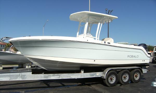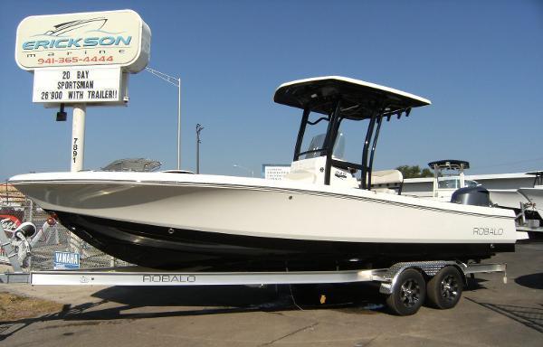 TRAILER INCLUDED!!! This boat is rigged with a Yamaha 300 HP 4-Stroke. It is loaded with great options and features. It is designed to take inshore/offshore fishing capabilities to another level, the 246's Extended V-Plane hull design can easily navigate both shallow water fishing holes and big water destinations. Simply stated, where ever they're biting, the 246 can speed you there. The boat's wide deck layout combined with excess hull flare, delivers more fishing space, stability and a dryer ride than rivals. The 246 simply won't back down no matter what Mother Nature dishes out. Robalo leaves no detail uncovered. Innovative hideaway seating says welcome aboard then converts to the ultimate fishing machine with huge casting decks forward and aft. Lockable rod storage and live bait well capacity is best in class. Designed for comfortable extended outings, the 246 features a forward entry privacy head and wrap around bow seating. The best helm design in this size range features Yamaha digital gauges with plenty of room for advanced electronics. A complete array of stainless steel hardware is a cut above. The 246 is equally impressive under the gelcoat with Kevlar reinforcement, rot free construction and a poured composite transom.